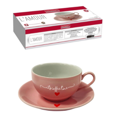 Jogo de xícaras de chá L'AMOUR 12 peças rosa.